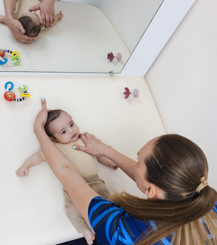 Therapy sessions also include guided movement and age-appropriate activities that help your child practice turning their head, reaching, and moving more comfortably as they grow. These activities support head control and make everyday moments like feeding, floor play, and holding objects feel easier and more natural.